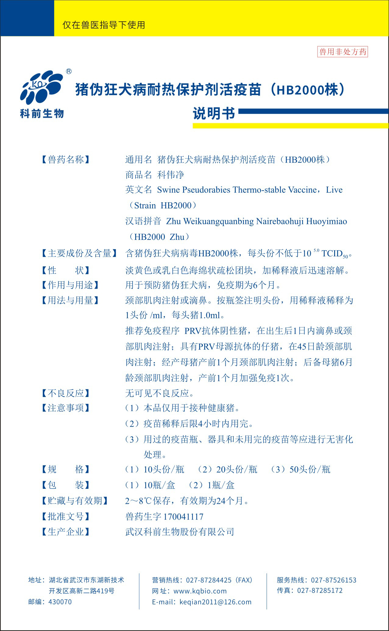 豬偽狂犬病耐熱保護(hù)劑活疫苗(HB2000株)