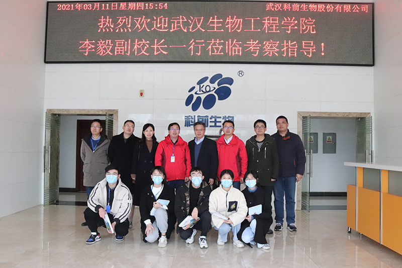 2021年3月11日,武漢生物工程學院副校長、生命科學與技術(shù)學院院長李毅教授帶隊來司參觀考察,并慰問在司畢業(yè)生。公司常務副總經(jīng)理徐高原博士、相關(guān)部門負責人和畢業(yè)生代表熱情接待了來訪嘉賓一行。