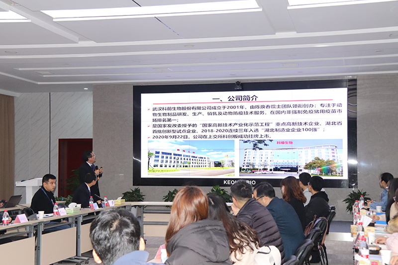 晏向華副院長、王湘如教授、張悅老師詳細(xì)介紹了高級獸醫(yī)創(chuàng)制人才班的創(chuàng)立初衷、人才培養(yǎng)模式和教學(xué)目標(biāo)。晏向華指出,高級獸藥創(chuàng)制人才班立足科學(xué)前沿、植根社會需求,旨在為國家培育一批獸醫(yī)藥領(lǐng)域的復(fù)合型人才。他高度評價(jià)了華中農(nóng)業(yè)大學(xué)與科前生物長期以來的深入合作,并就“人才班”學(xué)員來司實(shí)習(xí)安排與公司展開細(xì)致探討。