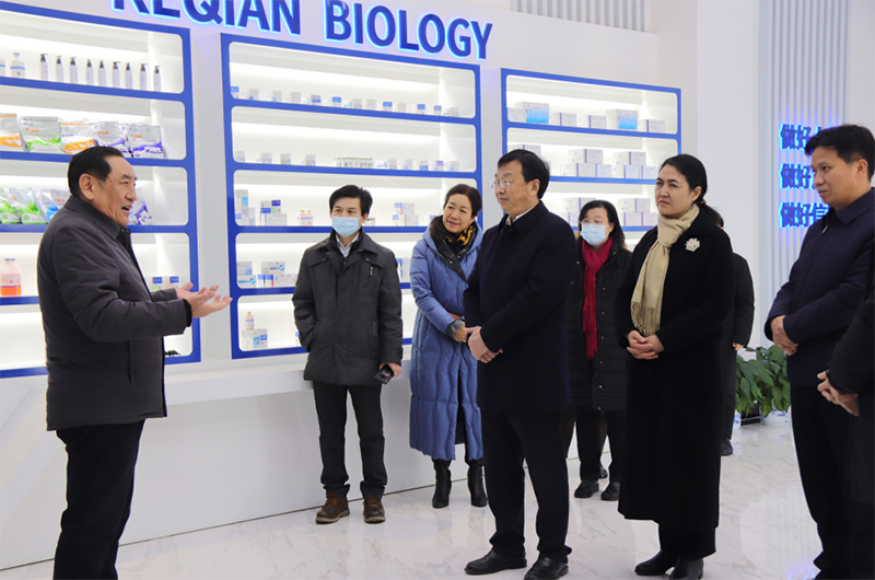 董事長(zhǎng)陳煥春院士對(duì)吳祖云一行表示熱烈歡迎,對(duì)省農(nóng)業(yè)農(nóng)村廳及市、區(qū)農(nóng)業(yè)農(nóng)村局長(zhǎng)期以來(lái)對(duì)科前生物事業(yè)發(fā)展的關(guān)心支持表示感謝他簡(jiǎn)要介紹了科前生物成立20年來(lái)的發(fā)展歷程,對(duì)公司“創(chuàng)新、創(chuàng)造、創(chuàng)業(yè)”文化進(jìn)行了解讀。他指出,公司始終堅(jiān)持產(chǎn)業(yè)需求導(dǎo)向,以滿足養(yǎng)殖戶需求為愿景,為我國(guó)畜牧業(yè)疫病防控提供了科前方案。他表示,未來(lái)公司將繼續(xù)秉持人才立企、科技強(qiáng)企、產(chǎn)業(yè)興企的理念,做好人品、做好產(chǎn)品、做好信譽(yù),為我國(guó)畜牧業(yè)疫病防控和湖北農(nóng)業(yè)高質(zhì)量發(fā)展做出更大貢獻(xiàn)。