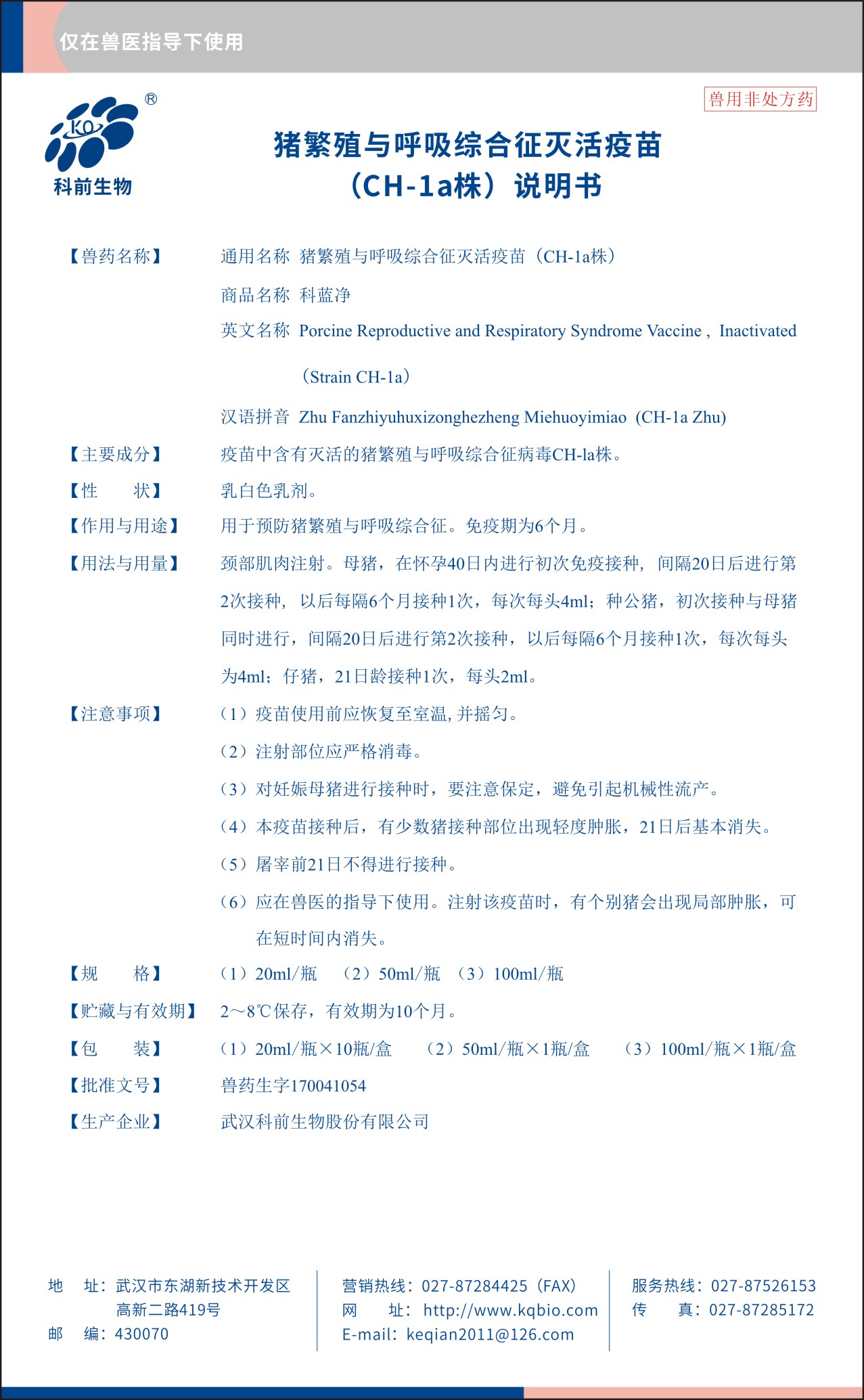 英文名稱:Porcine Reproductive and Respiratory Syndrome Vaccine,Inactivated(Strain CH-1a)