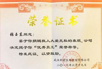 科前員工張玉東為挽救白血病患者勇獻造血干細胞